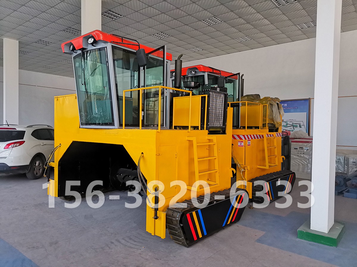 三、攪拌好的配料堆成寬1.5米-2米,高0.8米-1米的長條,每2天用翻拋機(jī)翻拋一次。